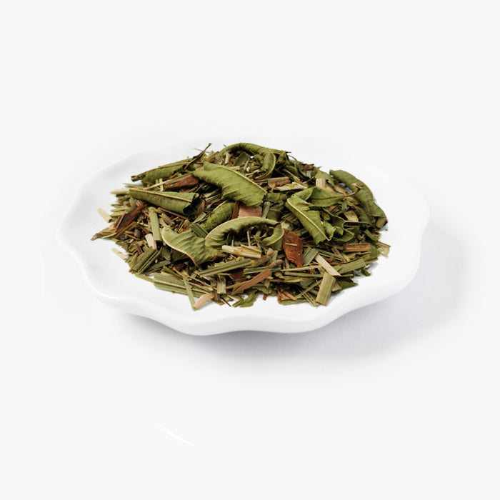 Ingrédients : verveine, romarin, citronnelle, thym, fleurs de tilleul, lavande, cannelle, feuilles d’olivier.